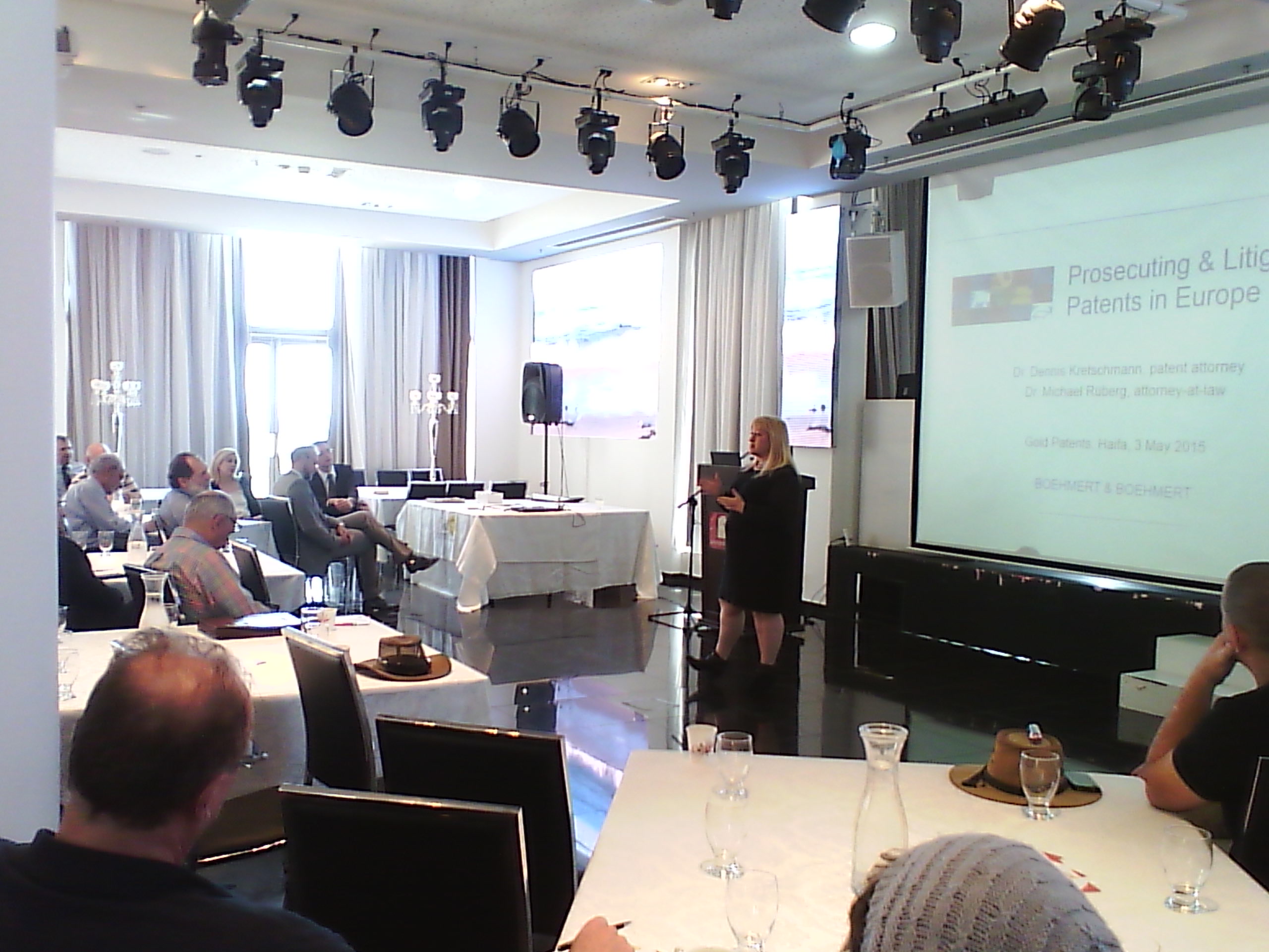 - סמינר האביב של גולד פטנטים בנושא הגנה ואכיפה של קנין רוחני באירופה, הוצג ע"י אורחינו ממשרדי Boehmert & Boehmert ממינכן, באולמי אקווה מרין, מלון לאונרדו בחיפה, 3 במאי 2015.