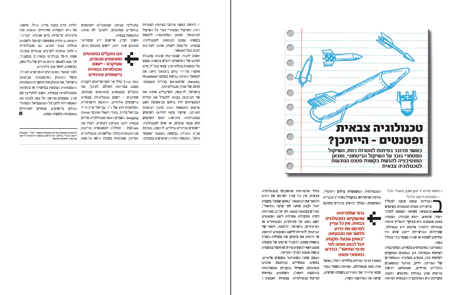 שם המאמר הוא טכנולוגיה צבאית ופטנטים – הייתכן ?