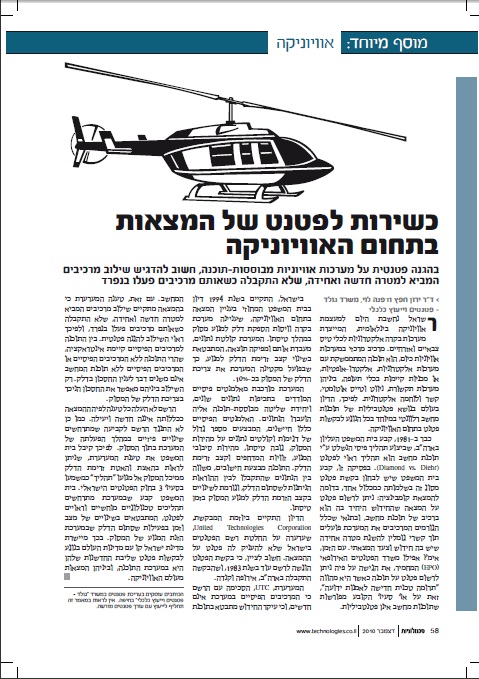 בישראל התקיים בשנת 1994 דיון בבית המשפט המחוזי בעניין המצאה בתחום האויוניקה, שעניינה מערכת בקרה וויסות הספקת דלק למנוע מסוק במהלך טיסתו. המערכת קולטת נתונים, מעבדת אותם ומפיקה תוצאה, המתבטאת בשינוי קצב זרימת הדלק למנוע, כך שבפועל מקטינה המערכת את צריכת הדלק של המסוק בכ-10%.